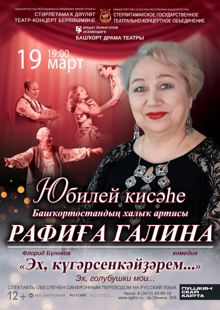 19 марта Стәрлетамаҡ дәүләт театр-концерт берекмәһенең Илшат Йомағолов исемендәге Башҡорта драма театры Башҡортостандың халыҡ артисы Рафиға Ғәлинаның юбилей кисәһенә саҡыра.