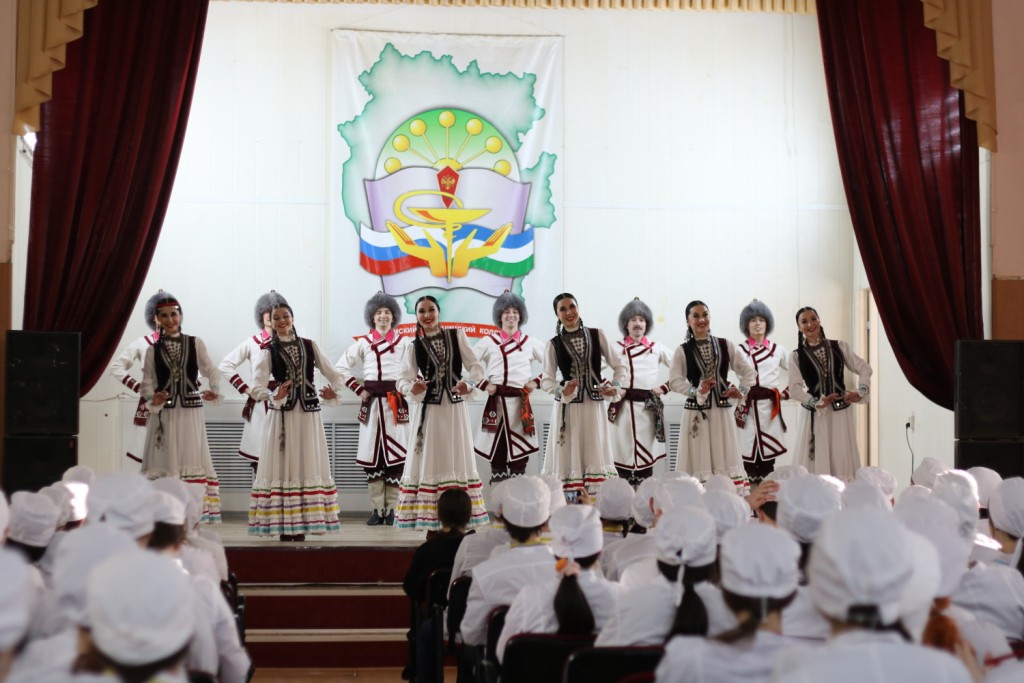 6 февраля для студентов медицинского колледжа была представлена программа «Танцы народов России». Гаскаровцы исполнили композиции из золотого фонда башкирской хореографии: «Зарифа», «Семь девушек», «Проказницы» – и другие жемчужины репертуара: татарский, белорусский, калмыцкий танец и другие яркие композиции. А также учащиеся послушали мелодию в исполнении солиста оркестра госансамбля Азата Хисматуллина.