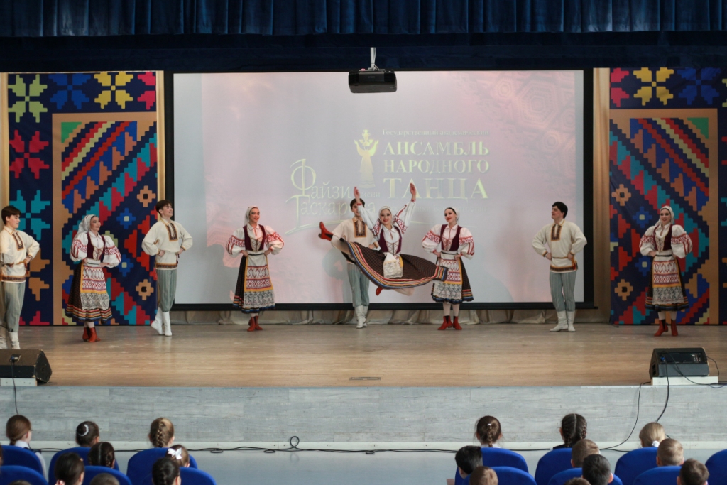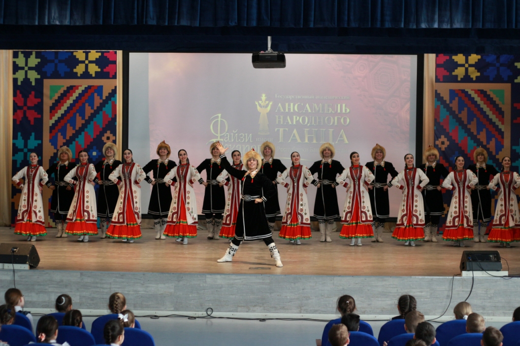 Для учащихся гимназии № 2 «СМАРТ» коллектив представил концертную программу «Танцы народов мира». В нее вошли признанные шедевры из золотого фонда Файзи Гаскарова: горно-башкирский танец «Гульназира» и танец-легенда «Семь девушек», а также танцы народов мира – испанский, китайский, хорезмский, цыганский танец и другие шедевры репертуара.