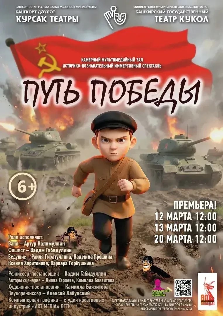 12 марта в камерном зале Башкирского государственного театра кукол состоится уникальная премьера – иммерсивный спектакль «Путь Победы», посвящённый героическим событиям Великой Отечественной войны.