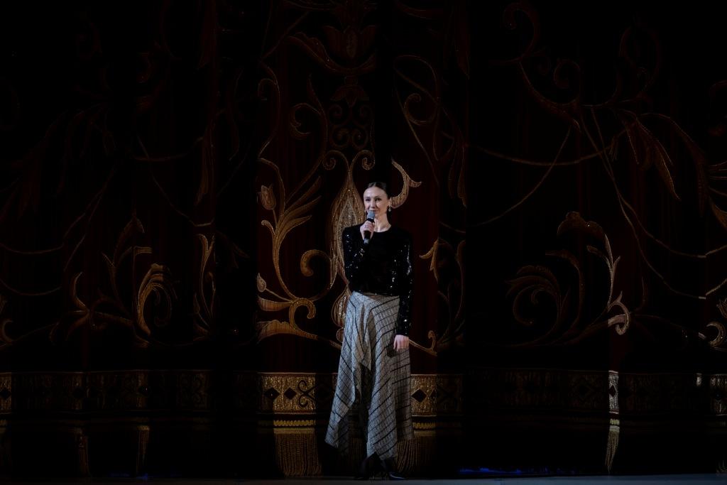В начале концерта с приветственным словом к зрителям обратилась народная артистка России, исполняющая обязанности ректора МГАХ Светлана Захарова:
