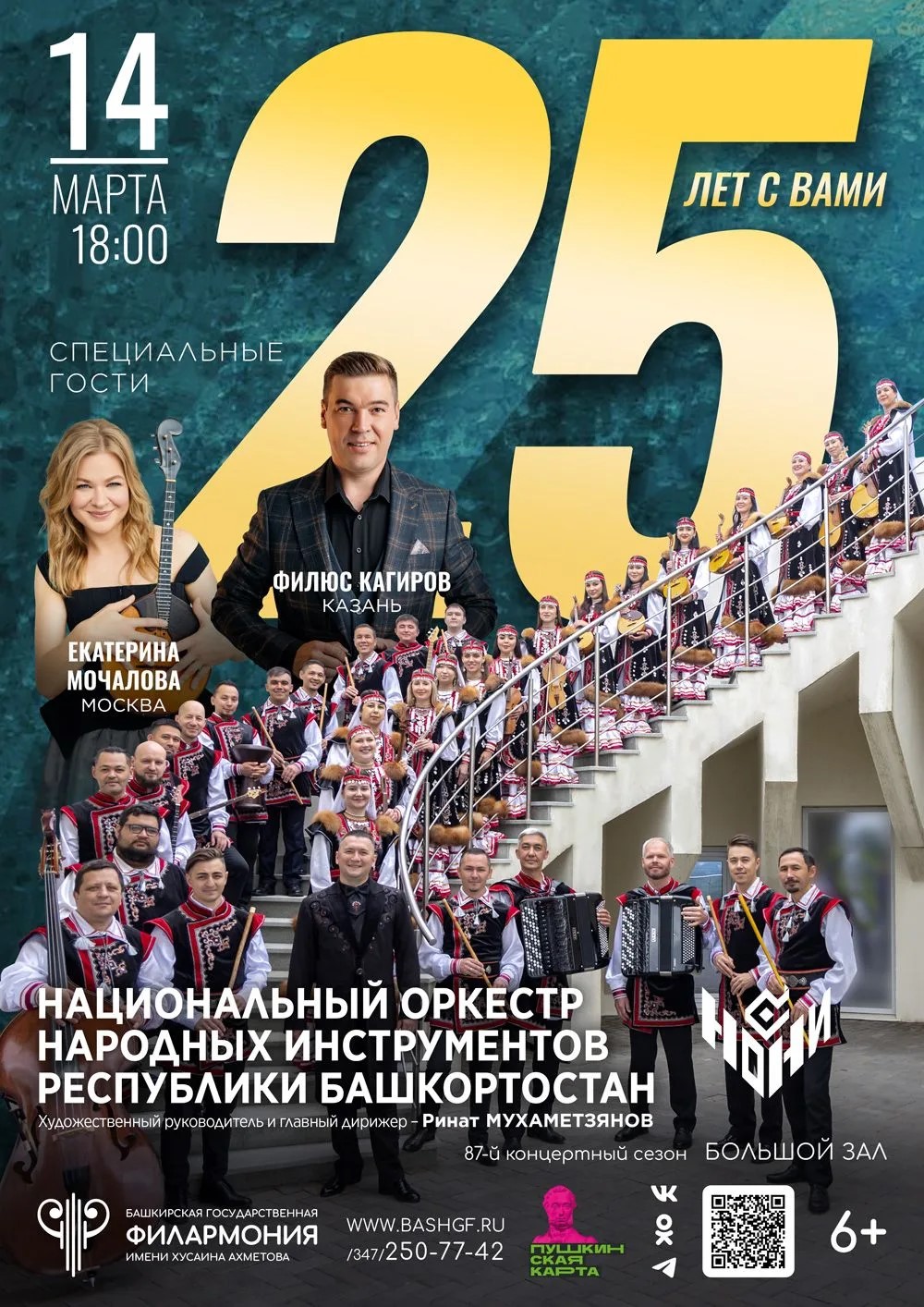 14 марта ведущий этноколлектив республики – Национальный оркестр народных инструментов Республики Башкортостан – отпразднует своё 25-летие ярким и незабываемым концертом. Историческое событие состоится в Большом зале Башкирской государственной филармонии имени Хусаина Ахметова.