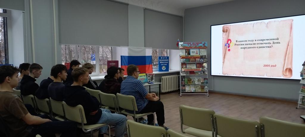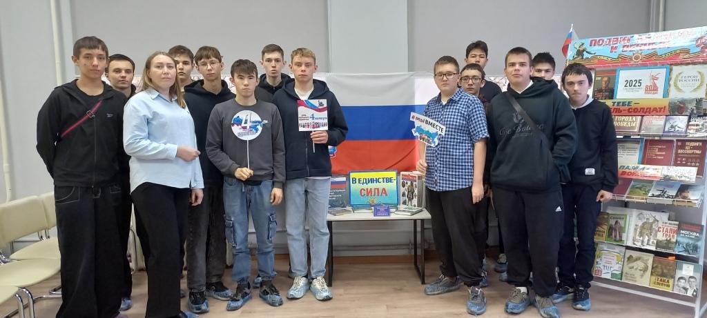 Центральная модельная ЭтноСмарт библиотека Ишимбайского района организовала мероприятие «Россия – священная наша держава» для учащихся профессионального лицея №76. Ведущие познакомили студентов с героическими страницами отечественной истории, включая события Смутного времени, освободительную борьбу против польских захватчиков, роль Кузьмы Минина и Дмитрия Пожарского, а также подвиг Ивана Сусанина. Особое внимание уделялось духовной составляющей праздника, связанной с почитанием Казанской иконы Божией Матери. Мероприятие сопровождалось электронной презентацией «В единстве народа — будущее России» и выставкой книг «В единстве — сила».