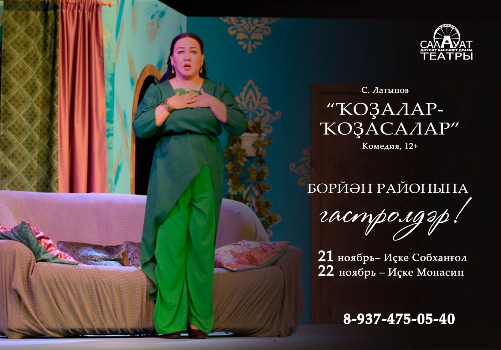 С 21 по 22 ноября Салаватский государственный башкирский драматический театр организует гастроли в Бурзянский район. В рамках поездки артисты представят музыкальную комедию «Сваты» (Ҡоҙалар-ҡоҙасалар) по пьесе Хамдии и Сулеймана Латыповых. Режиссер спектакля — заслуженный деятель искусств РБ Ильдар Валеев.