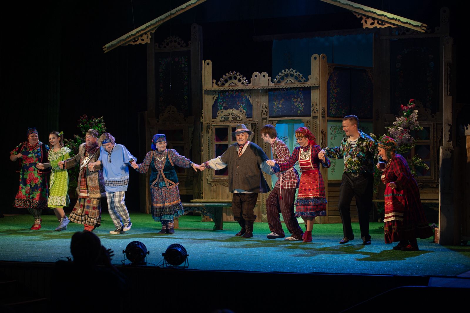 Постановочная группа: режиссер-постановщик – Р. Хакимов, композитор – Р.Салишев, хореографы – Э.Суяргулов, Е.Саможен. Помня слова Шекспира о том, что «весь мир – театр», на сцене видим полное этому подтверждение. Как и полагается в хорошей комедии, здесь наличествует свое подводное течение, глубинный подтекст: смех и танцы не позволяют забыть о самом главном - нельзя создать счастливое будущее без опоры на мудрость и опыт прошлого.