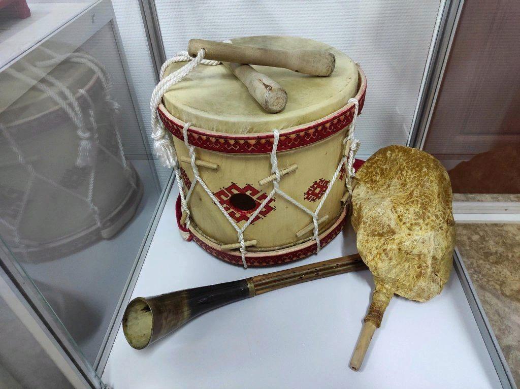 Марийские забавы часто сопровождались песнями и танцами, а музыкальные инструменты в них применялись не только для создания звукового фона, но и как игрушки. Главный предмет, вокруг которого будет разворачиваться игра, – барабан. Один из участников, барабанной палочкой прикасается к любому из участников и быстро подбежит к инструменту, чтобы положить на него палочку, а затем занять место задетого игрока. Тот, в свою очередь, будет стараться выхватить палочку и вернуться на свое место раньше игрока в роли ведущего. Веселее будет, если игрок в роли ведущего будет юноша, он пригласит в игру девушку, и наоборот.