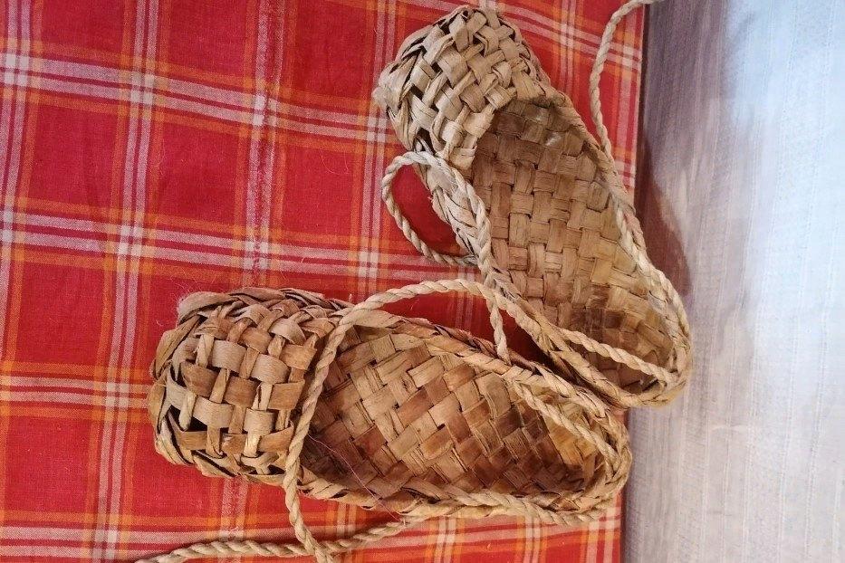 Марийские лапти – это обувь, сплетенная из липового лыка (типа сандалий), которую привязывали к ноге длинными шнурами (опорами). Марийцы носили их чаще всего с суконными или вязаными чулками, льняными или шерстяными портянками белого цвета. Техника плетения марийских лаптей от русских отличается тем, что марийские плетутся с носка, а русские с пятки. Марийские лапти ещё называются татарскими, потому что они плетутся одинаково. Необходимости в лаптях, как обуви нет, но традиции плетения должны сохранится.