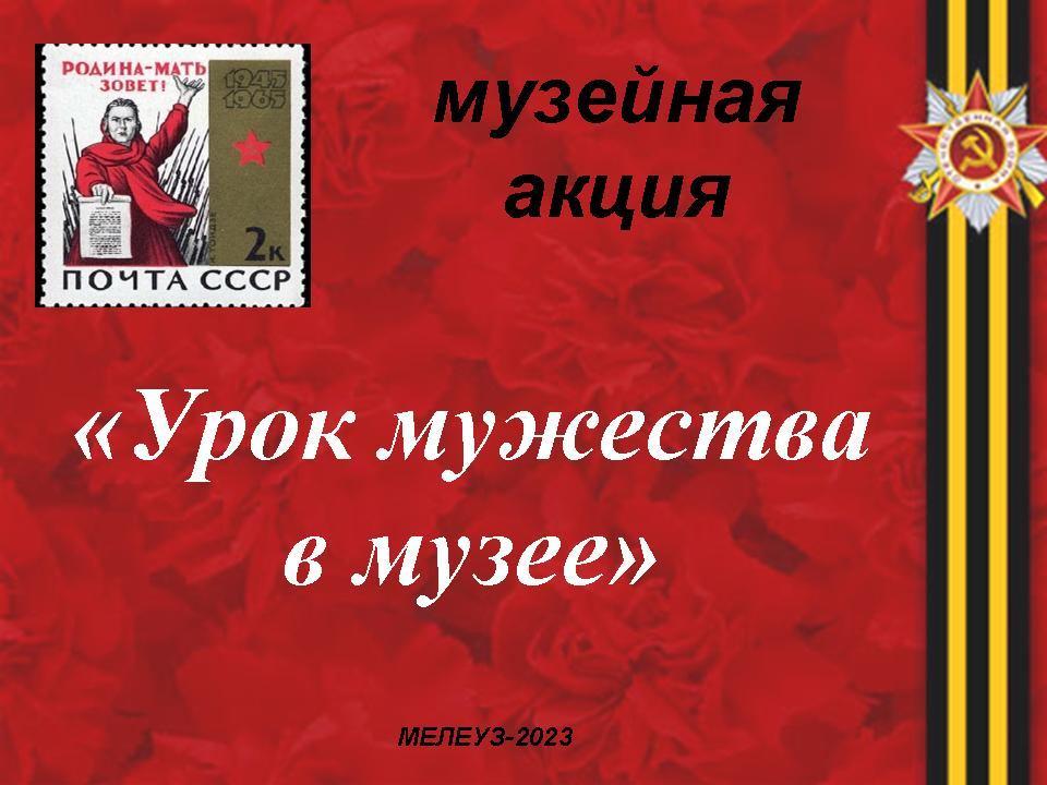 Музейная акция посвященная началу Великой Отечественной войны 1941-1945 гг пройдет в Мелеузовском музее. В этот день участники мероприятия узнают о событиях которые произошли 82 года назад. Сотрудники музея расскажут о том как после объявления войны 22 июня жители рабочего поселка Мелеуз, собрались на всеобщем митинге, где были организованы справочные столы и списки куда стали записываться первые добровольцы. И уже на второй день состоялись проводы первой группы мелеузовцев на фронт, а на третий день войны под звуки духового оркестра провожали колонну автомобилей нашей автобазы с водителями. В конце акции состоится просмотр фильма "Полуторка" (о мелеузовцах-фронтовиках, снятый в 1985 году мелеузовской киностудией)