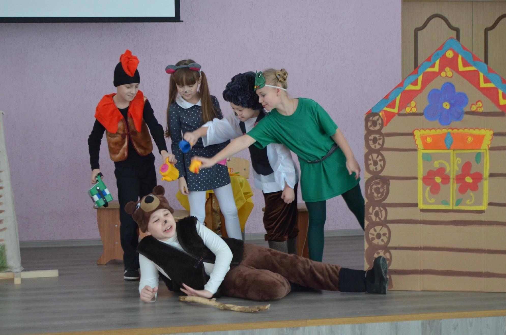 В идеале все дети должны превратиться в актеров, внимательно слушать текст постановки, который зачитывает режиссер, и выполнять действия своих персонажей. При этом говорить ничего не придется, максимум – издавать звуки отдельных героев, например жужжать, как пчела, или выть, как волк. Кому–то достанется роль занавеса, а кто–то станет декорациями сценки.