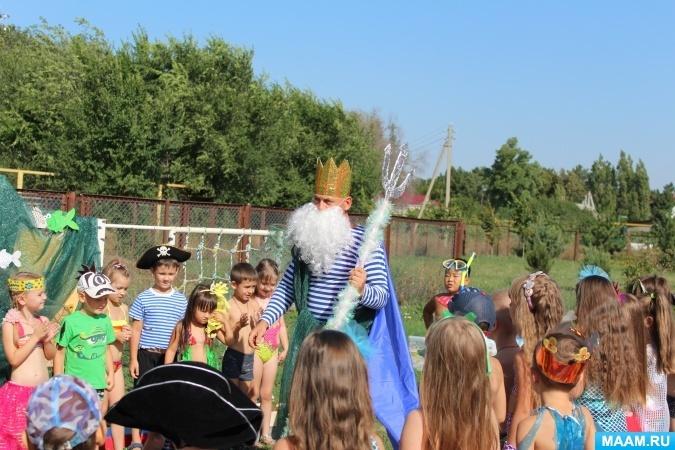 «День Нептуна» – это положительные эмоции, радость и здоровье. Главным действующим лицом праздника является, конечно же, Бог морей и океанов – Нептун, которого ребята ждут с нетерпением. Работники дома культуры подготовили для ребят конкурсную развлекательную программу. В программе дети смогут принять участие в конкурсах и играх: «Водоносы», «Достань жемчуг», «Рыбалка», «Быстрые крабики», «Чехарда» и другие. Заряд бодрости и хорошего настроения гарантирован каждому участнику и зрителю мероприятия. Пиком программы будут танцевальные флэш-мобы на морскую тему, которые внесут в сценарий веселье, задор. Завершится мероприятие водным салютом, который вызывает бурю положительных эмоций у детей.