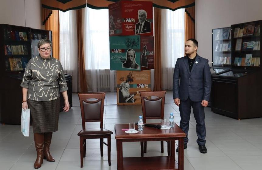 С приветственным словом к гостям обратилась директор библиотеки Айгуль Аминева. В знак уважения и признательности она подарила гостю книгу о героях.