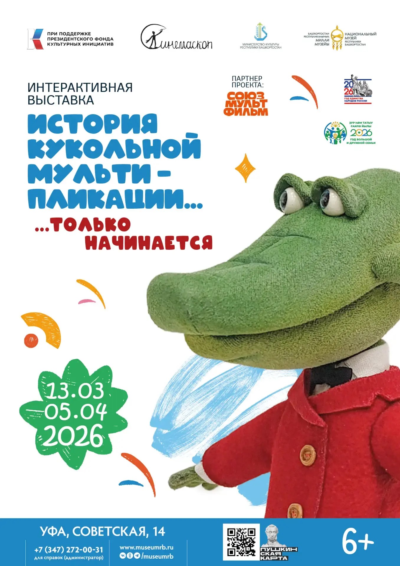 13 марта в Национальном музее Республики Башкортостан открывается передвижная интерактивная выставка «История кукольной мультипликации» – культурный проект, рассказывающий о кукольной анимации от её истоков до современных творческих и технологических решений.