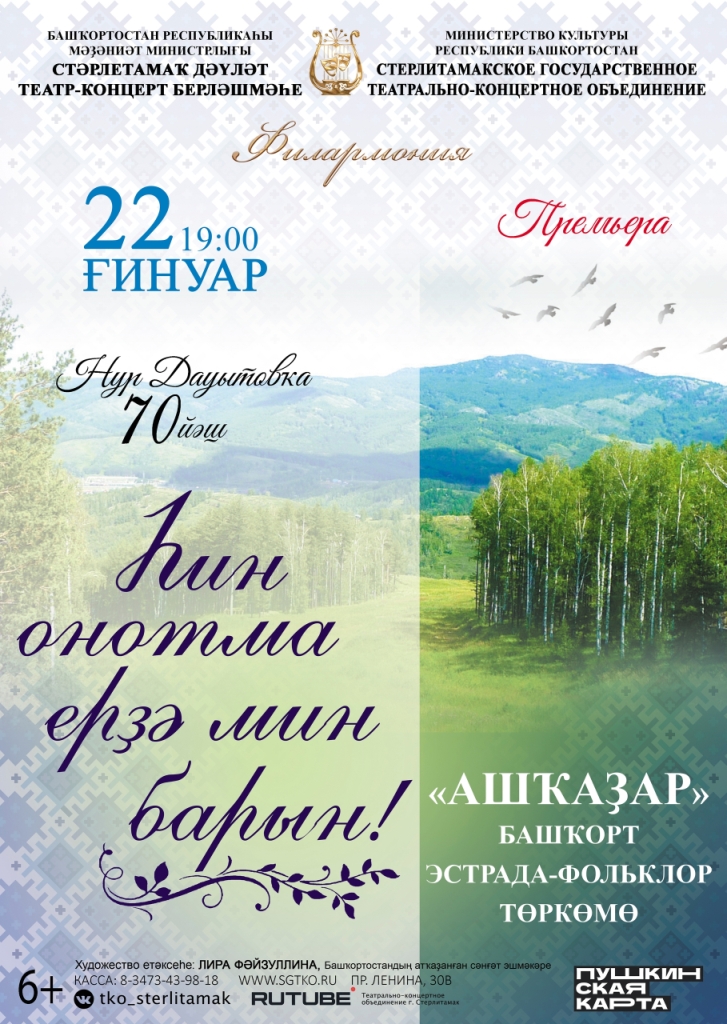 22 января состоится на сцене Стерлитамакского государственного театрально-концертного объединения состоится премьера филармонии «Һин онотма ерҙә мин барын!». Концерт башкирской эстрадно-фольклорной группы «Ашкадар» посвящена творчеству талантливого композитора, пианиста, педагога, заслуженного деятеля искусств РБ, народного артиста РБ Нура Даутова.