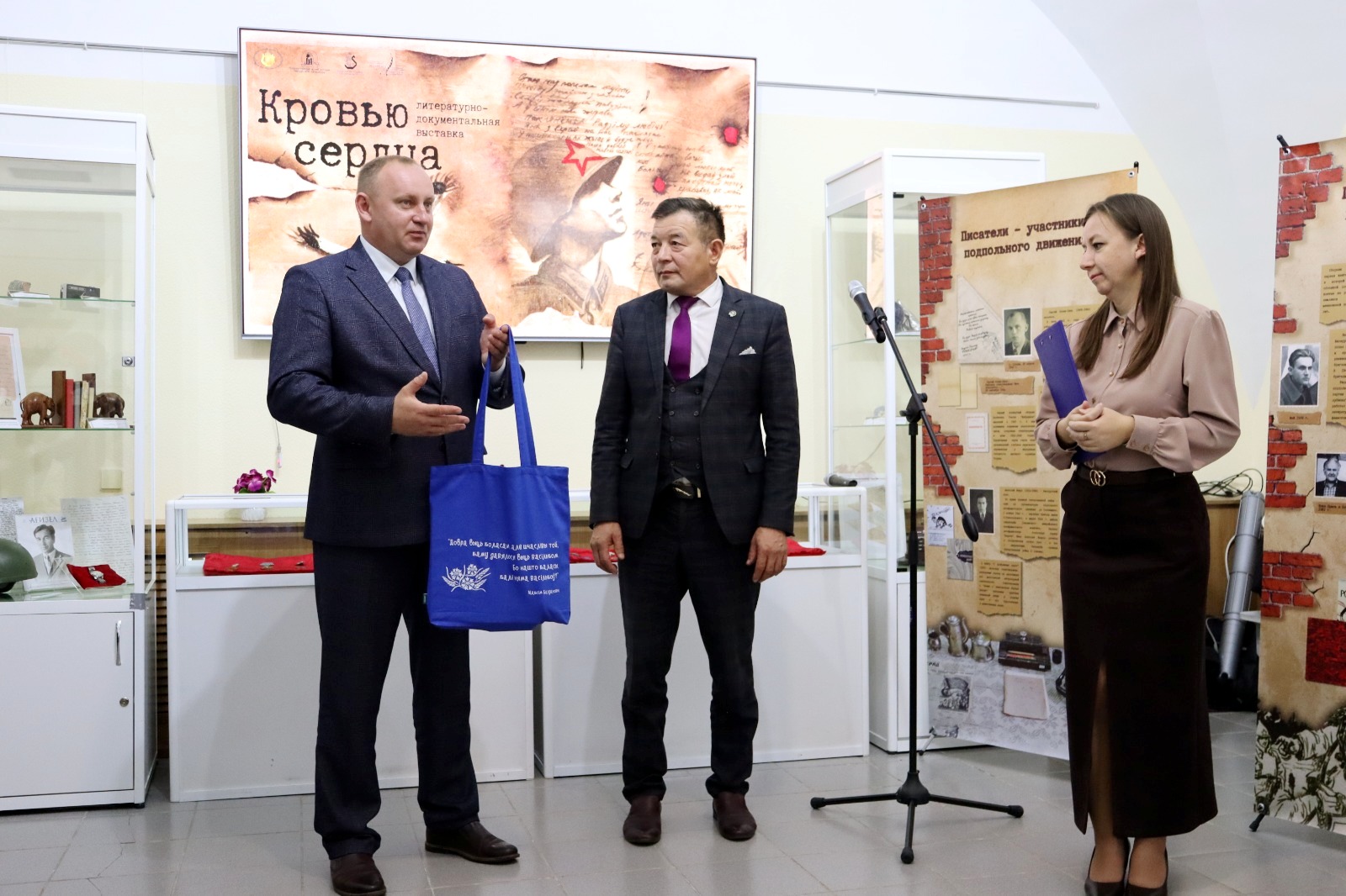Перед началом работы круглого стола состоялось открытие выставки «Кровью сердца», подготовленной Государственным музеем истории белорусской литературы и посвященного белорусским писателям-участникам Великой Отечественной войны. Заведующий отделом научно-просветительской работы Государственного музея истории белорусской литературы Валентина Короткина провела увлекательную экскурсию по этой экспозиции. Поэты и писатели Башкортостана Александр Хватков, Леонид Соколов, Владимир Кузмичев, Варис Акбашев, Гульнара Хальфитдинова поделились воспоминаниями о своих белорусских друзьях и читали наизусть свои произведения, посвященные родному краю.