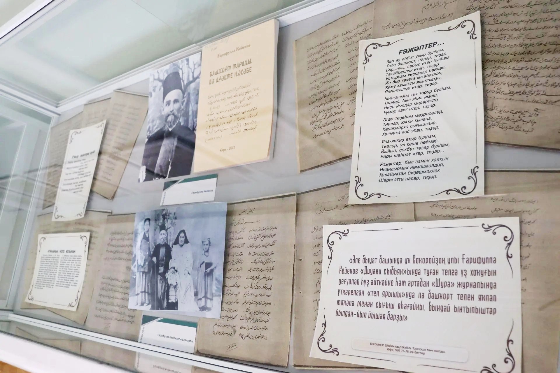 Особенностью экспозиции стали копии уникальных рукописей Гали Сокороя (книга «Тауарихи Булгария») и его сына, поэта Гарифуллы Киикова («Дастан-и сыбъян»), ранее недоступные широкой публике, оригиналы которых хранятся в Институте восточных рукописей Российской академии наук в Санкт-Петербурге и в Научной библиотеке имени Н.И. Лобачевского Казанского (Приволжского) федерального университета.