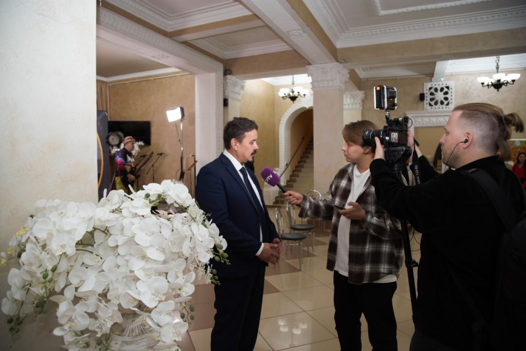 Праздник начался в фойе, где гостей встречали звуки музыки из известных фильмов в исполнении живого квартета. Атмосфера кинопавильона была создана благодаря специальной экспозиции: гости могли увидеть уникальные фотографии со съемочных площадок и сделать памятные снимки в тематической фотозоне с режиссерским креслом и хлопушкой. Все это создало теплую и вдохновляющую атмосферу, пронизанную духом творчества и искусства.