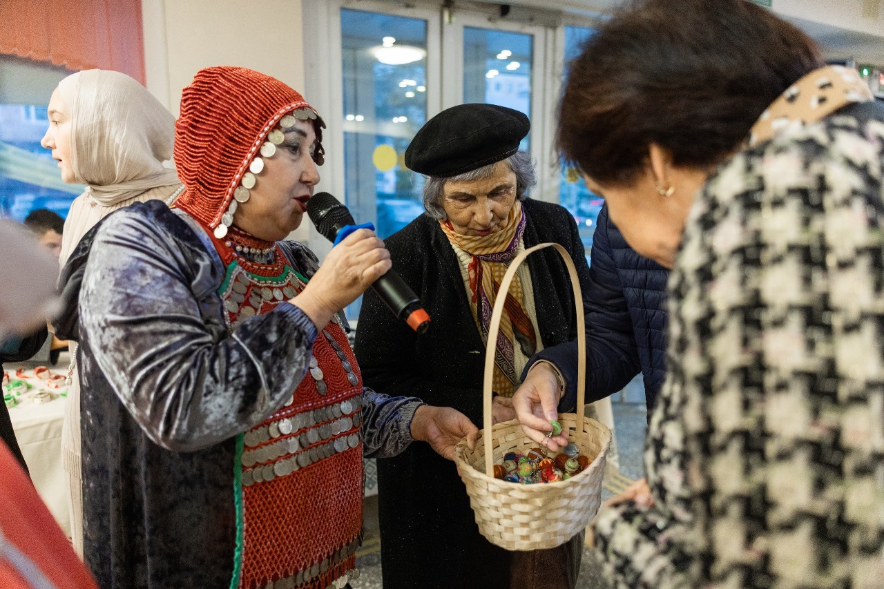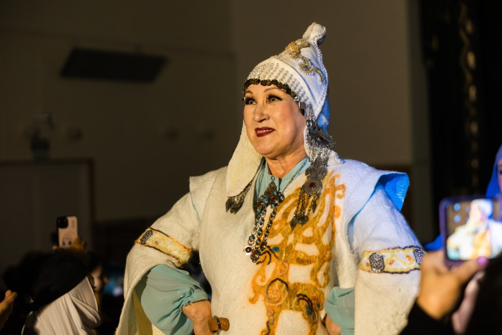 В фойе Культурного центра «Атайсал» гостей встречали два обаятельных персонажа – Рух и Назгуль. Вместе с ведущей они дарили зрителям украшения из войлока, созданные на мастер-классах в каждом из которых - частичка тепла рук мастериц и традиционные узоры.