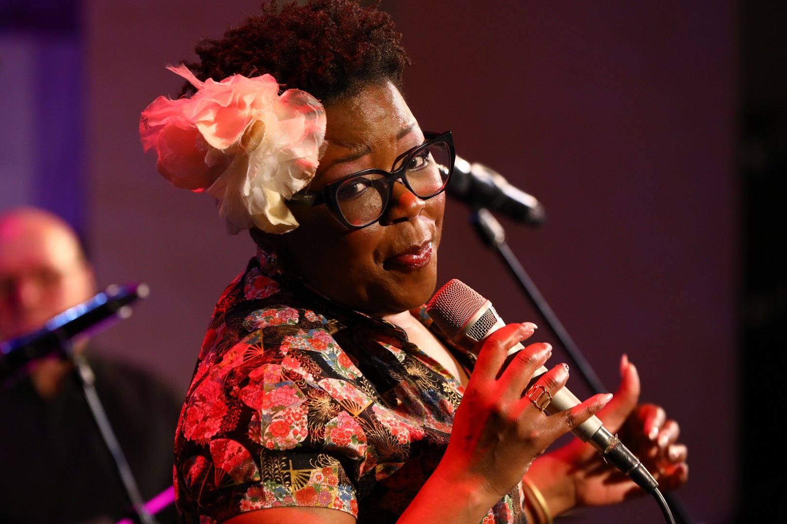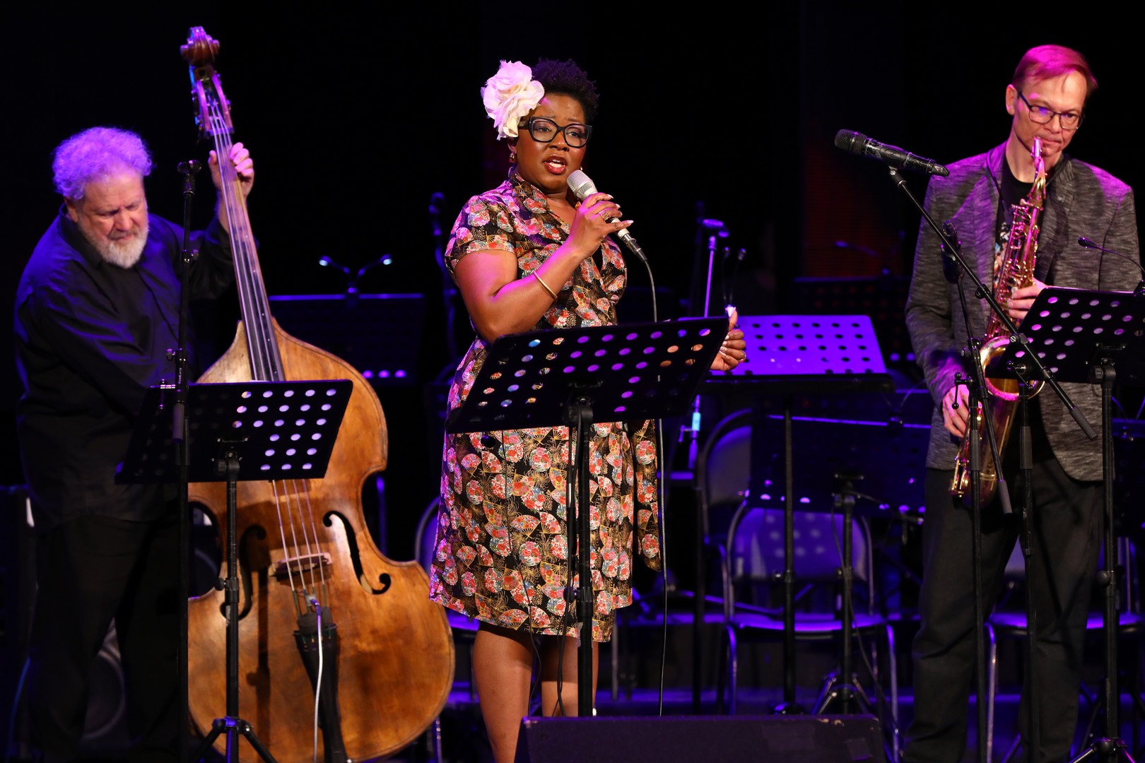 Второе отделение вечера принадлежало Моник Томас (США – Франция). Её харизматичный вокал и изысканная манера исполнения создали неповторимую атмосферу, покорившую сердца зрителей. Стоит отметить, что Моник Томас была заявлена на 4 апреля, но из-за форс-мажора выступила в первый день с квартетом Олега Касимова, а 4 апреля представит уфимцам оркестровую программу с Биг-бендом БГФ.