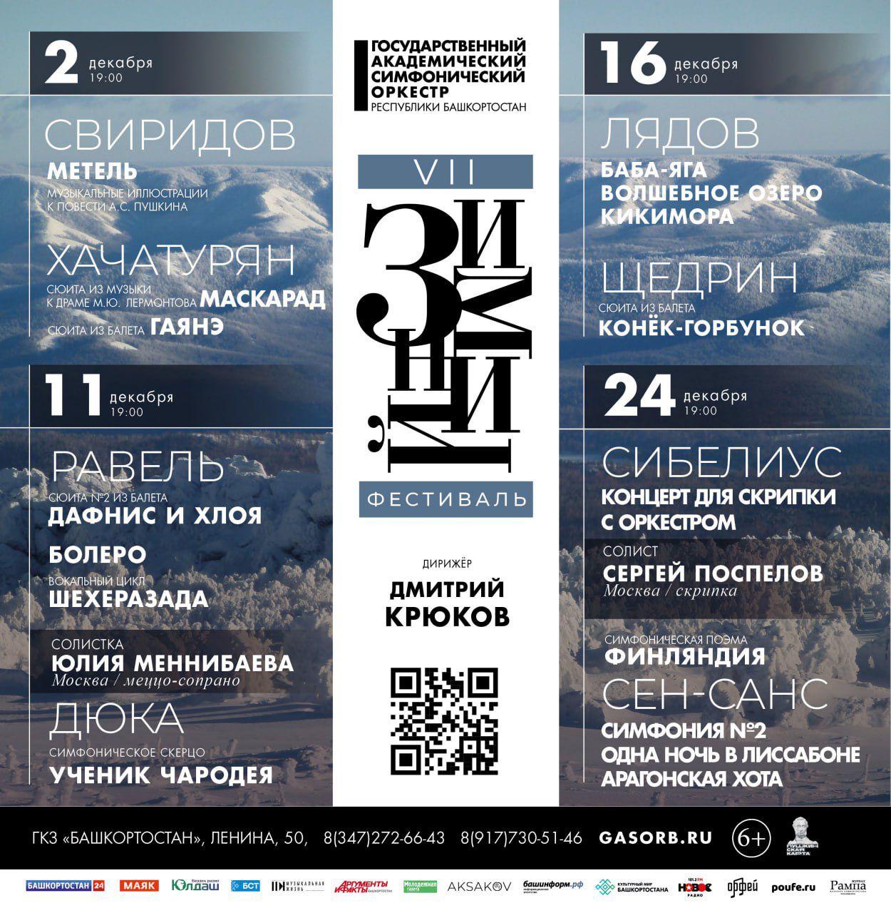 Открытие состоится 2 декабря в Уфе, прозвучат Музыкальные иллюстрации к повести А.С. Пушкина «Метель» Георгия Свиридова, а также Сюита из музыки к драме М.Ю. Лермонтова «Маскарад» и Сюита из балета «Гаянэ» Арама Хачатуряна.