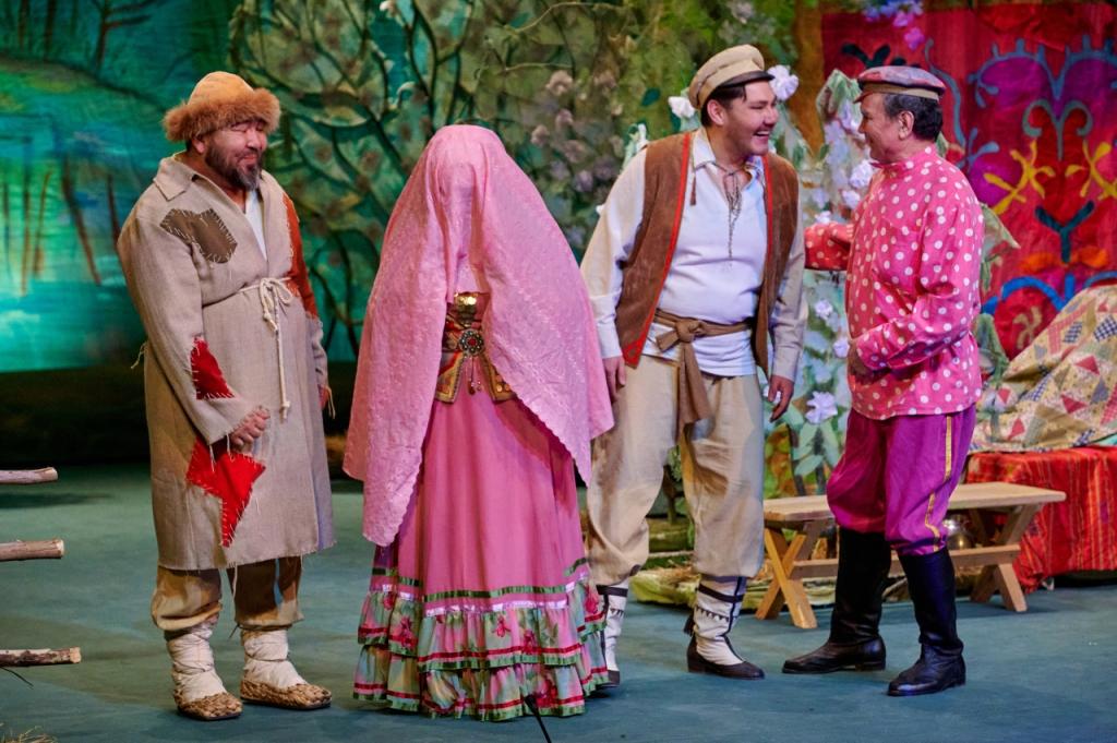 Светлана Аргинбаева предстала перед зрителями в роли Шамсии, порадовав зрителей безупречным вокалом и ярким актерским талантом. В роли Назы выступила Эльвира Алькина, Алим Каюмов воплотил образ Басира, Фанави Салихов – Яппара, а Артур Каипкулов – муллу. Спектакль прошел в сопровождении оркестра под управлением Марата Ахмет-Зарипова, создавая атмосферу праздника и веселья.