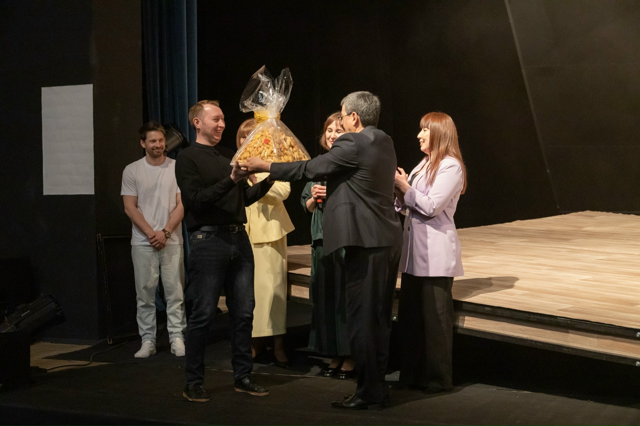 От принимающей стороны, театра «Нур», который сегодня сам с успехом представляет театральное искусство Башкортостана на гастролях в Казани, гостей приветствовали режиссёр Ильдар Валеев и руководитель литературно-драматургической части Гульнур Загидуллина. Они выразили самые тёплые пожелания и по доброй традиции подарили коллегам символ башкирского гостеприимства — чак-чак.